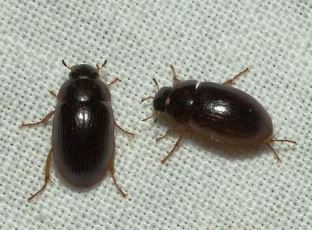 Черный хрущак поедает продукты, трикотажные и капроновые изделия. Поэтому его можно встретить и в платяном шкафу. Размер жука 5,5мм. Он переносит различные заболевания.